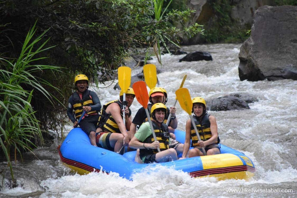Ubud Ayung River is the right choice for beginner or intermediate level, this river has a length of 10 km, with a track time of about 2-3 hours. The location of the Ayung river is about 10 km from the center of Ubud (Ubud Market), or if you are from Kuta it will take about 1 hour. The advantage of this Ayung river that you must try is the level II steep river which is suitable for beginners, families and relatives in the surrounding location, there are several selfie spots on cliff ornaments and waterfalls.